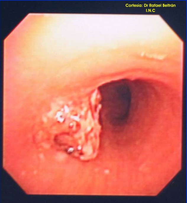 Imagen posterior a corte de pedículo de implantación, tumor polipoide de traquea